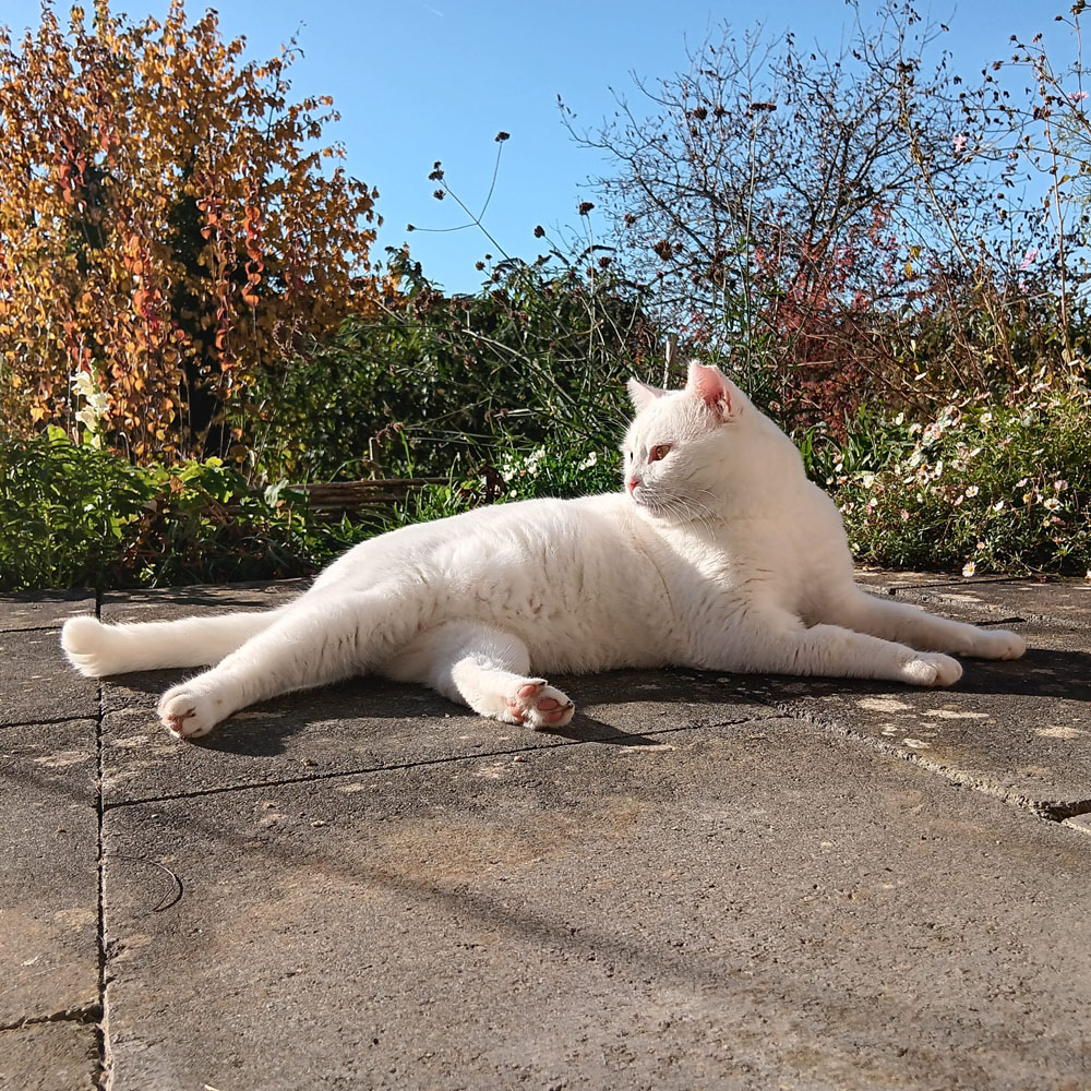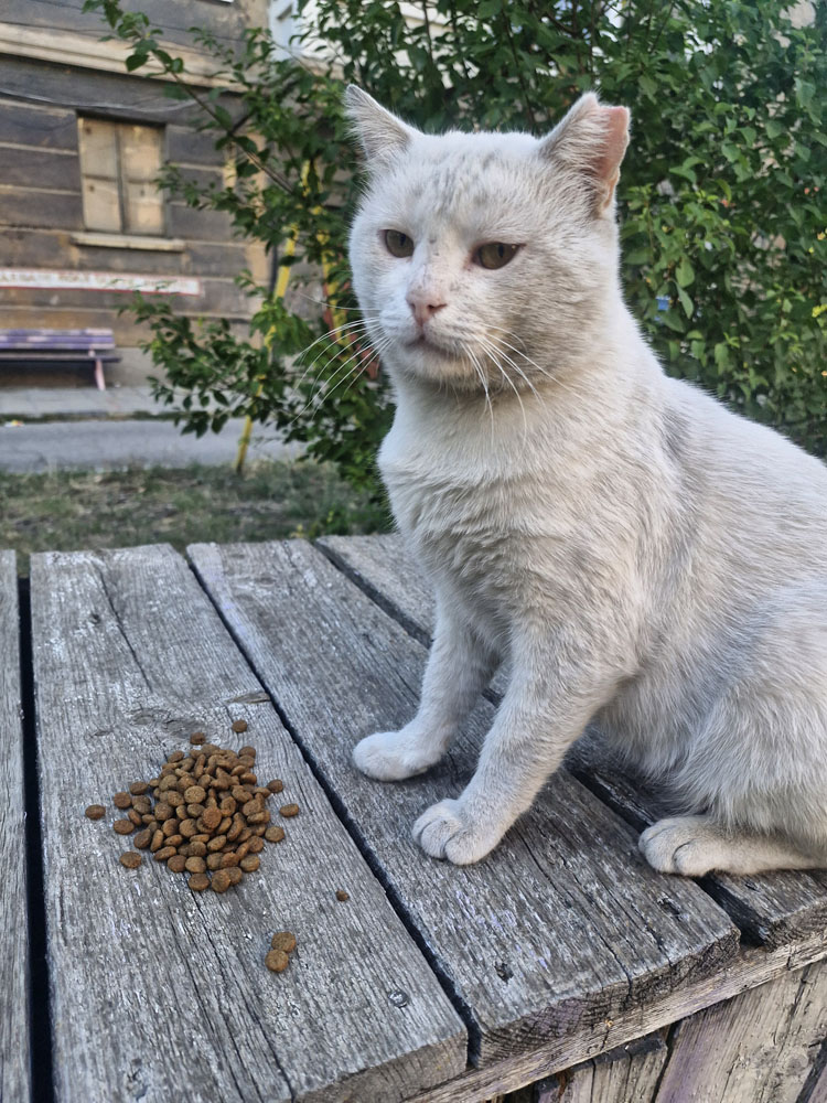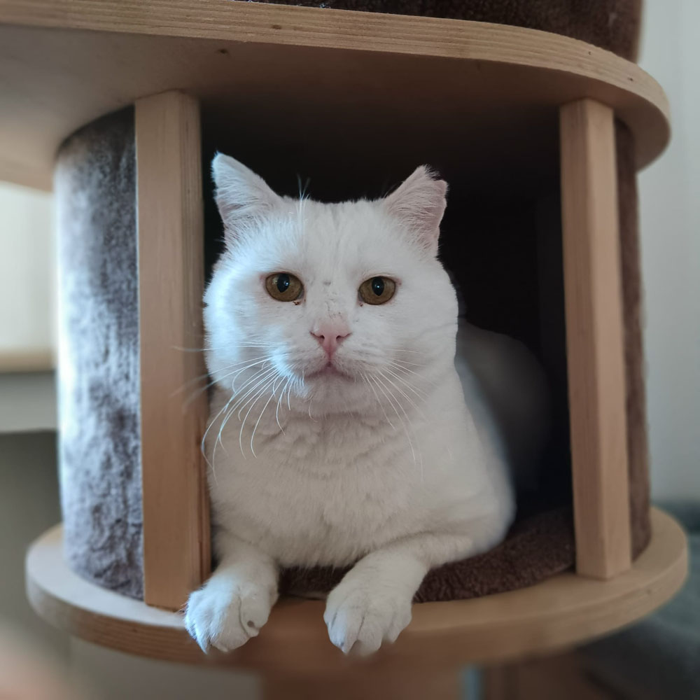 Ich bin ein weißer, stattlicher Kater mit einem weichen Blick und einem großen Herzen für Menschen. In Bulgarien wurde mein Alter einmal viel jünger geschätzt, aber nach einer gründlichen Untersuchung hier in Deutschland hat ein sehr erfahrener Tierarzt festgestellt, dass mein Körper etwas mehr Lebenserfahrung zeigt. Heute weiß man, dass ich ungefähr acht Jahre alt bin. Ein gutes Alter, um die Welt in Ruhe zu entdecken und ein richtiges Zuhause mit Freigang zu finden.